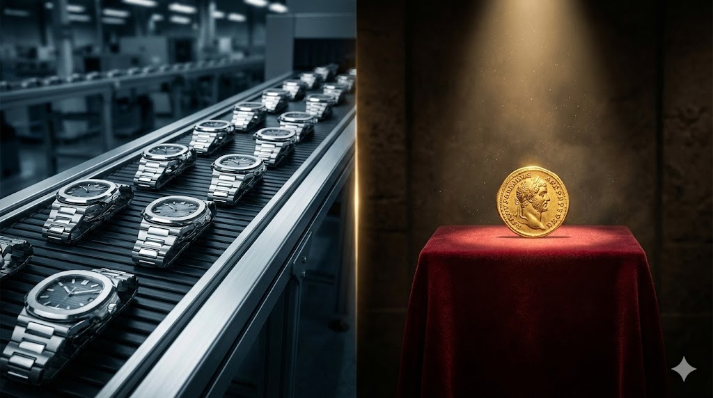 現行のロレックスやパテック・フィリップ(ノーチラス等)は、どんなに品薄商法をとっていても、本質的には**「再生産可能な工業製品」**です。